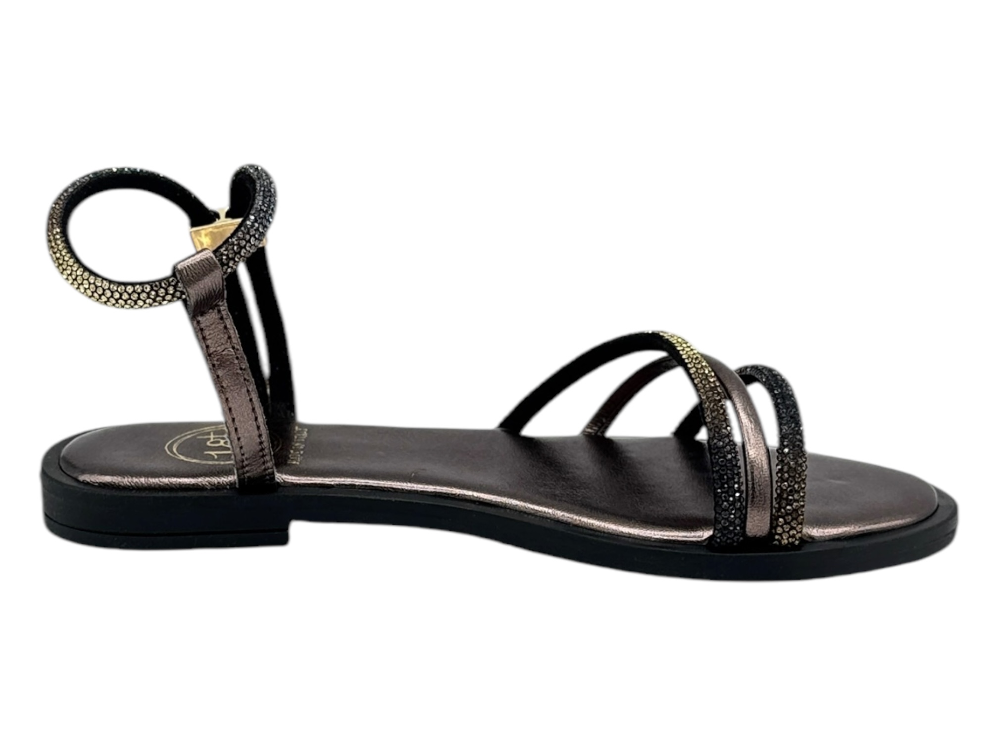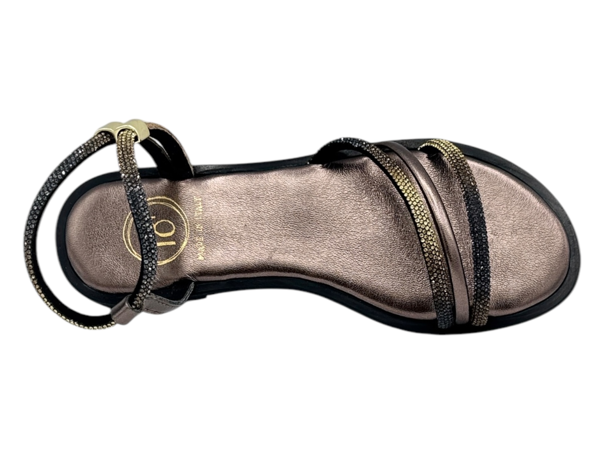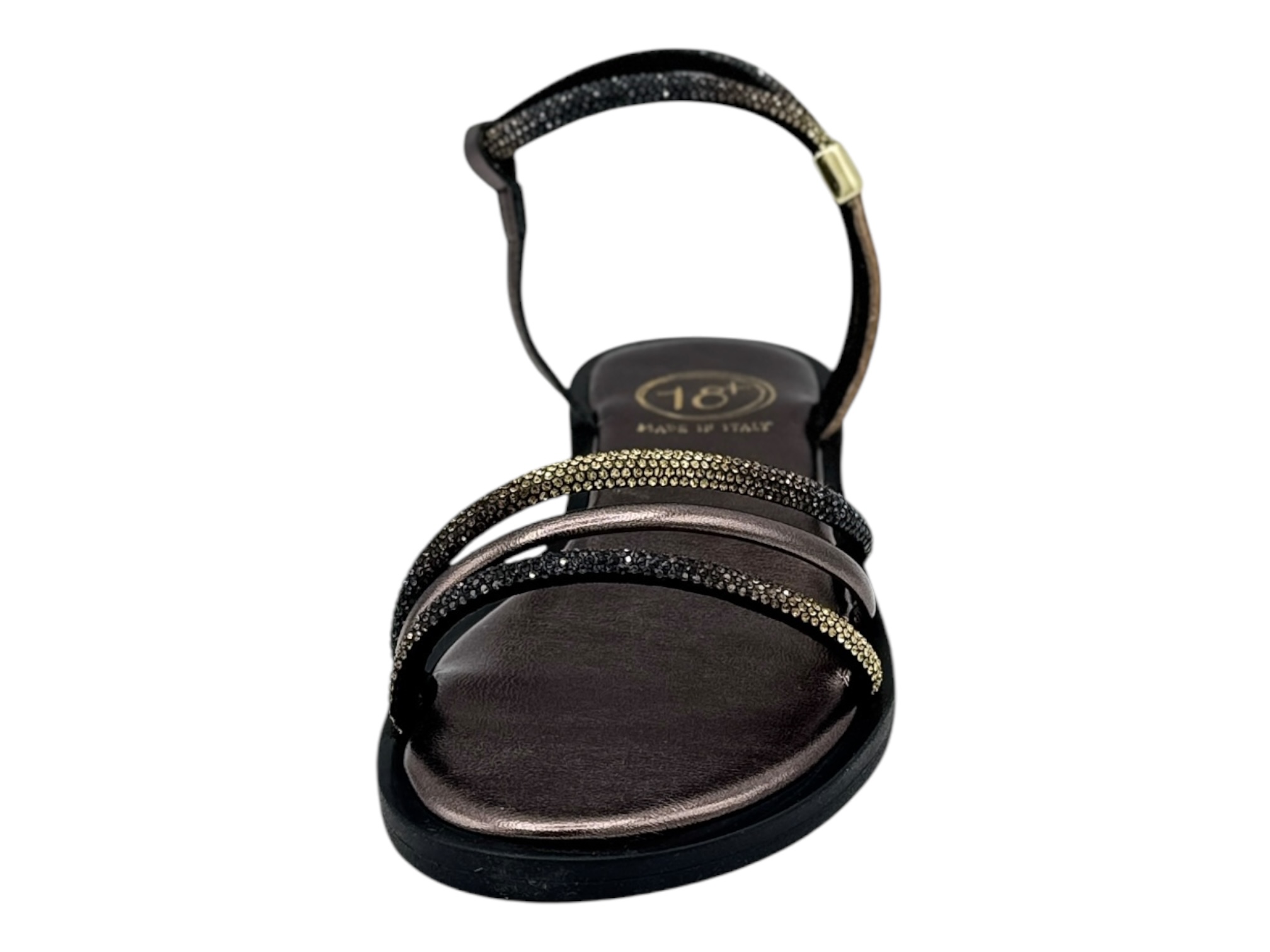 18+ 8799 bronzo sandalo donna strass tacco basso