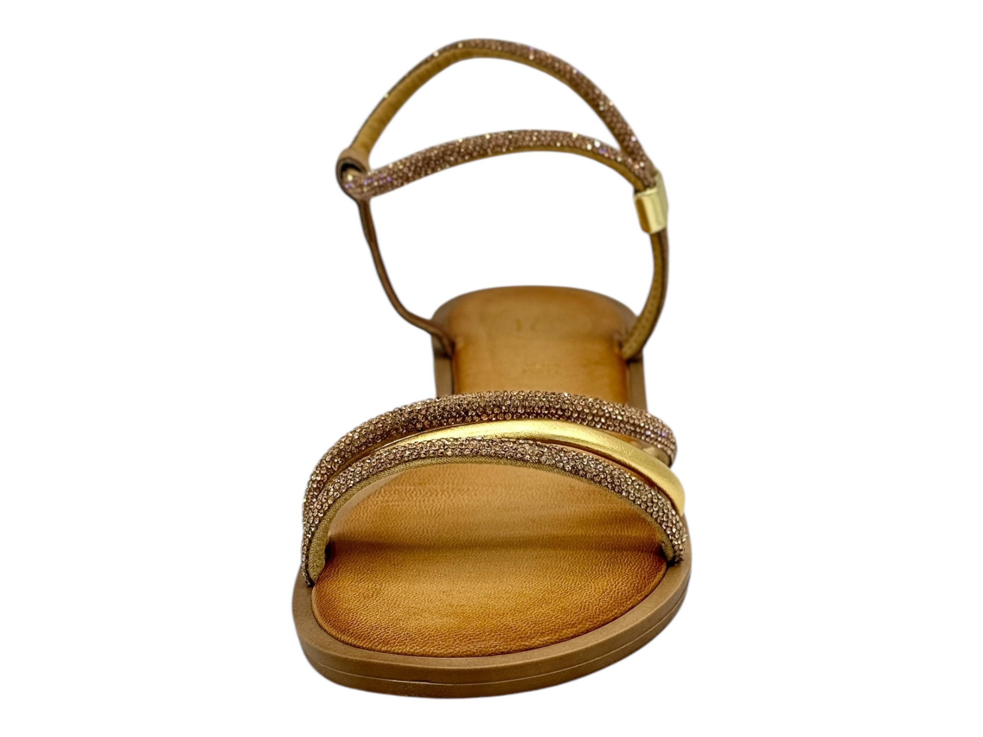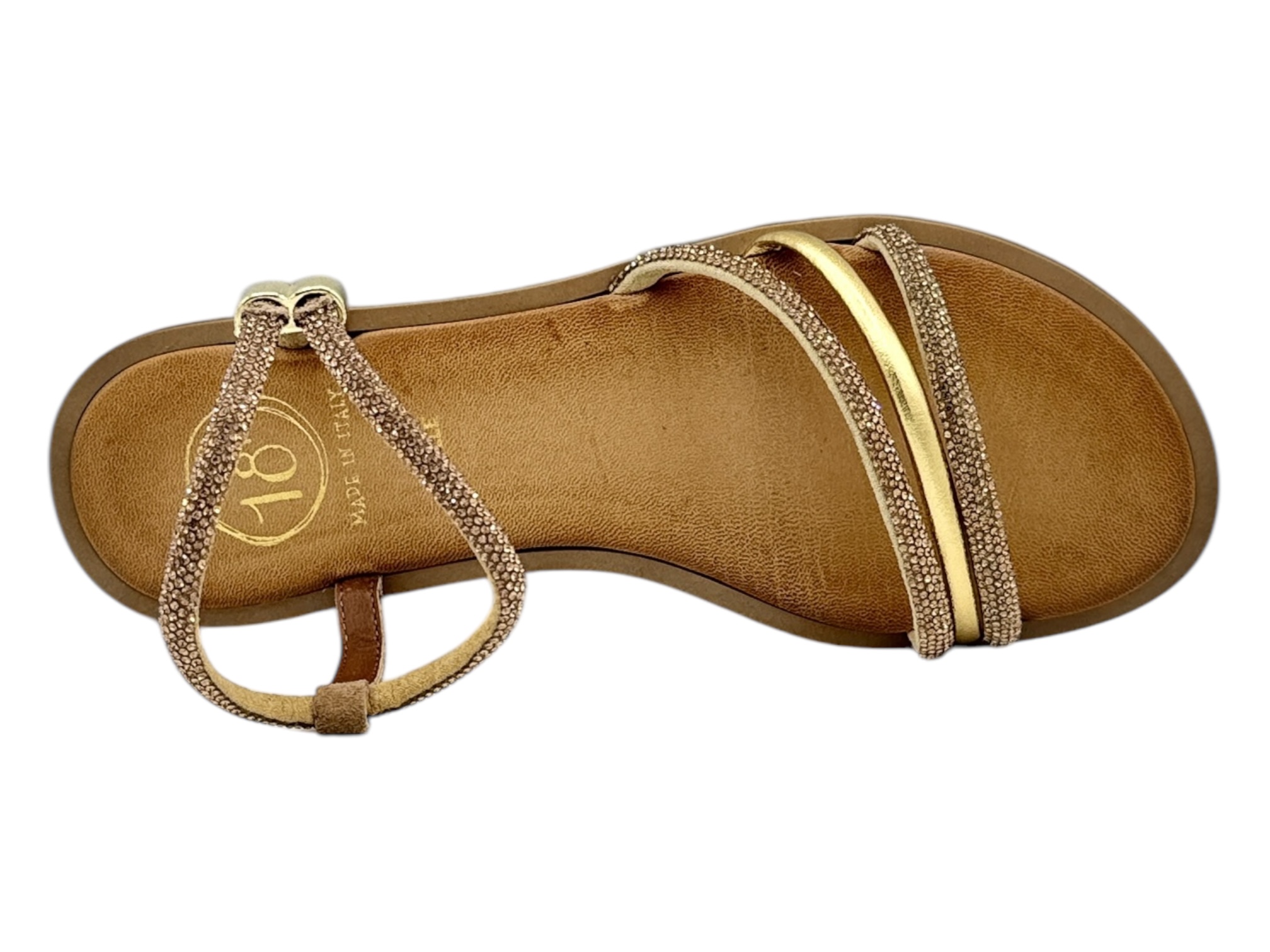 18+ 8799 oro sandalo donna strass tacco basso