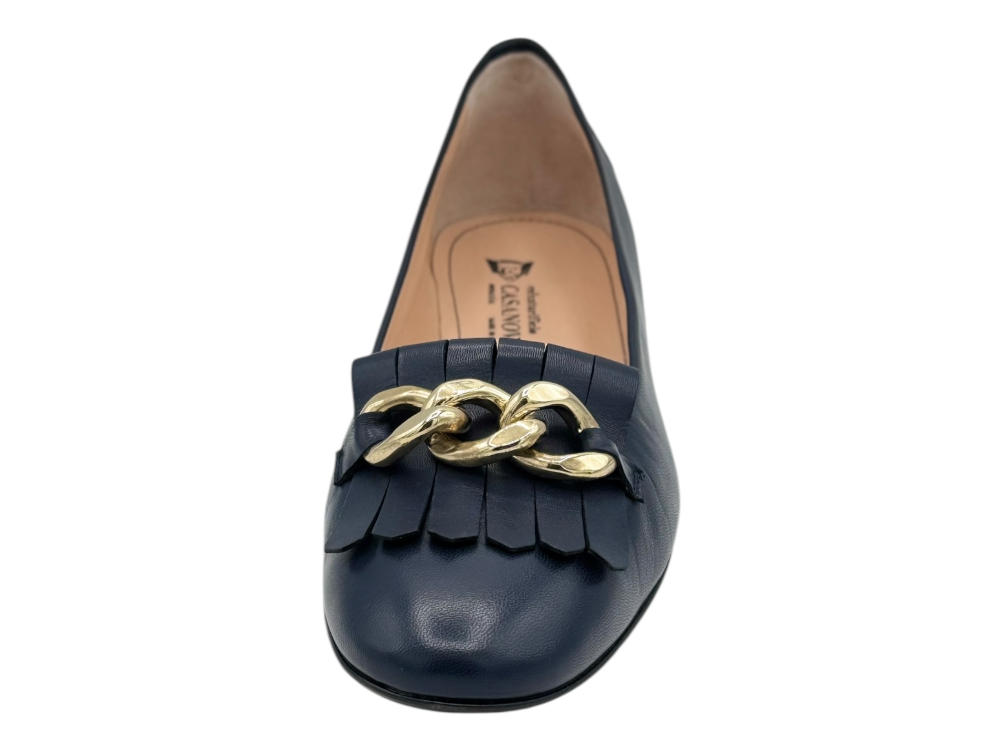Tomaia: pelle Fodera: pelle Soletta: pelle Plantare:no Fondo: cuoio Altezza pianata:0.5 cm Altezza tacco: 4 cm Chiusura: Applicazioni:frangia e catena Calzata: regolare MADE IN ITALY