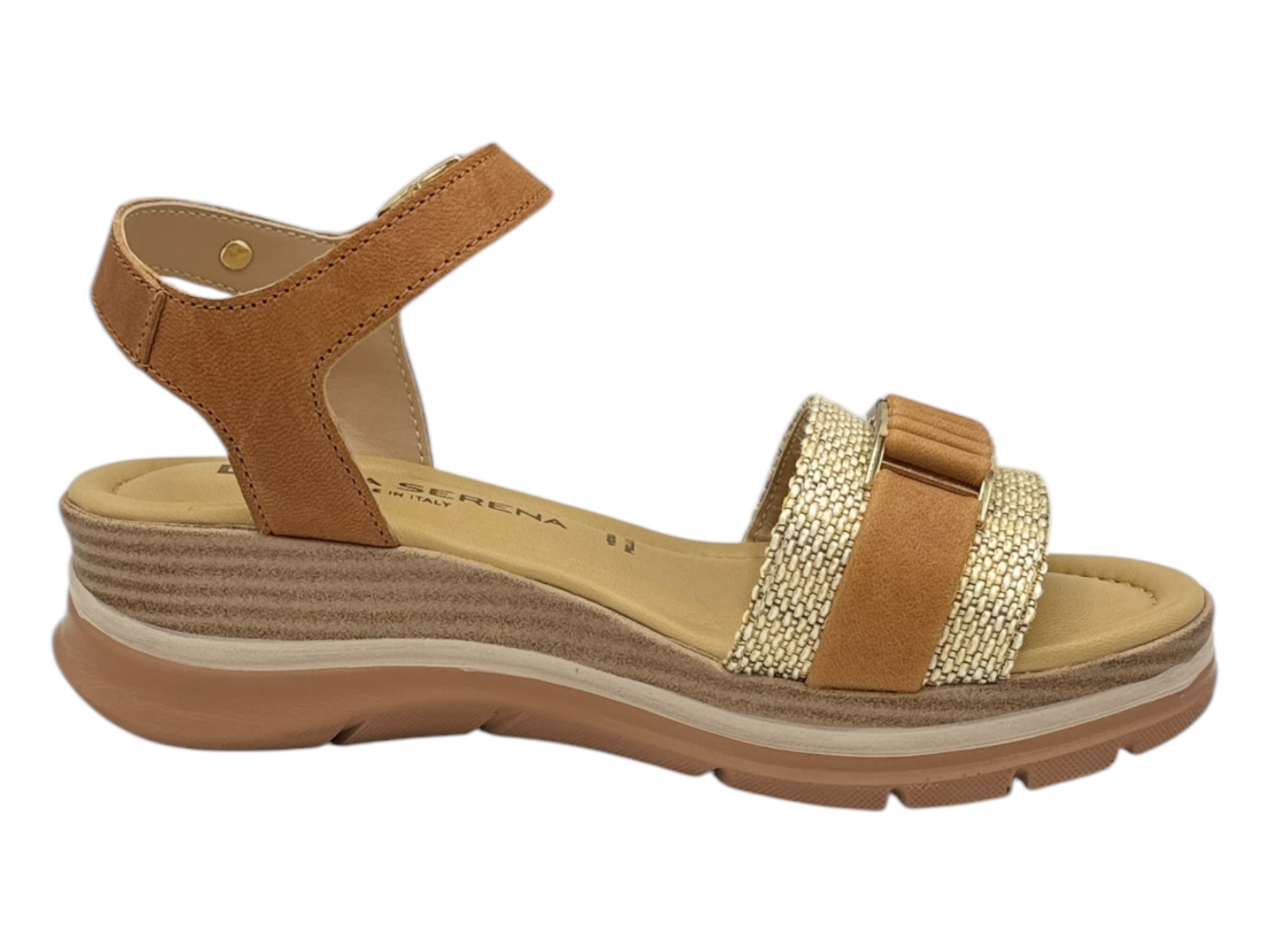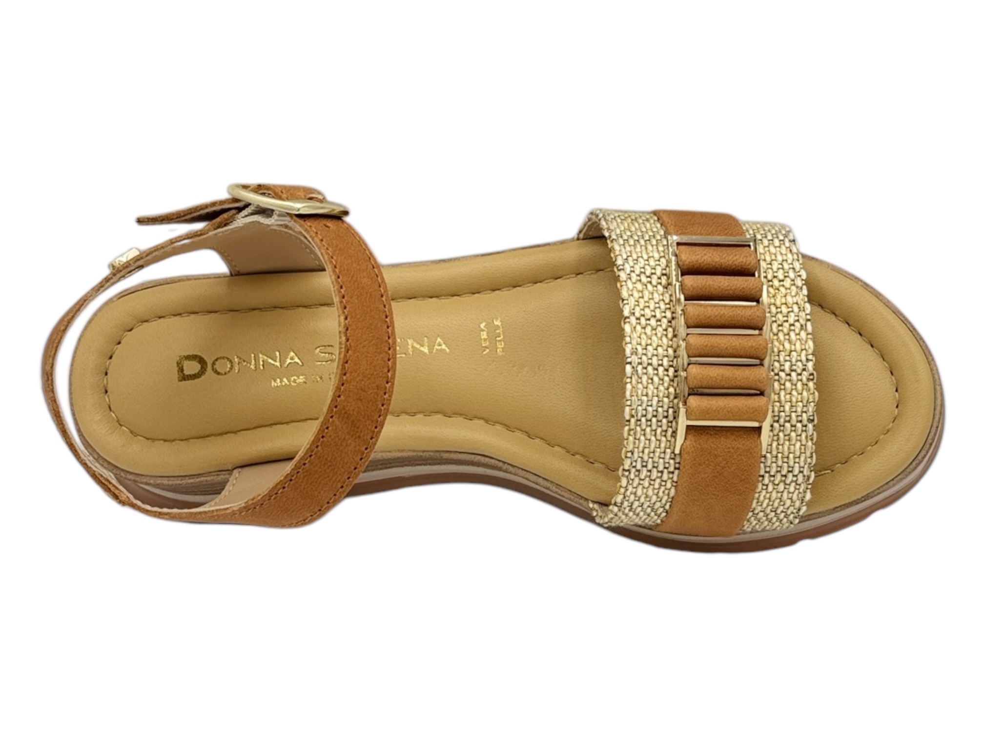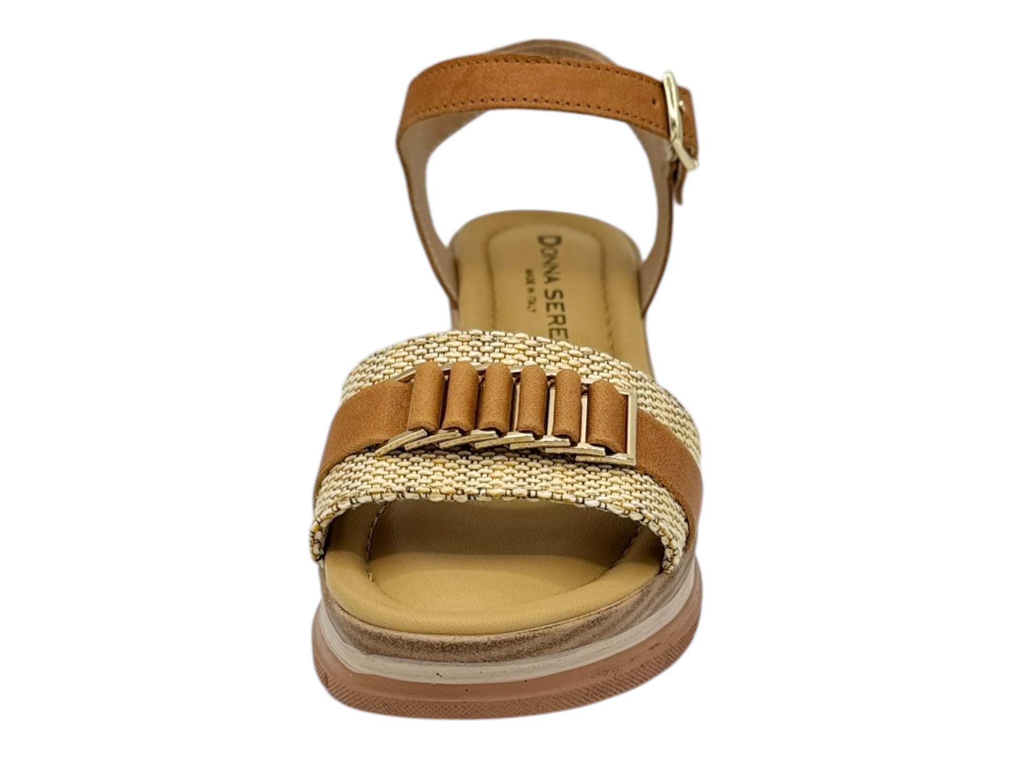 donna serena 445693 cuoio sandalo donna zeppa rafia
