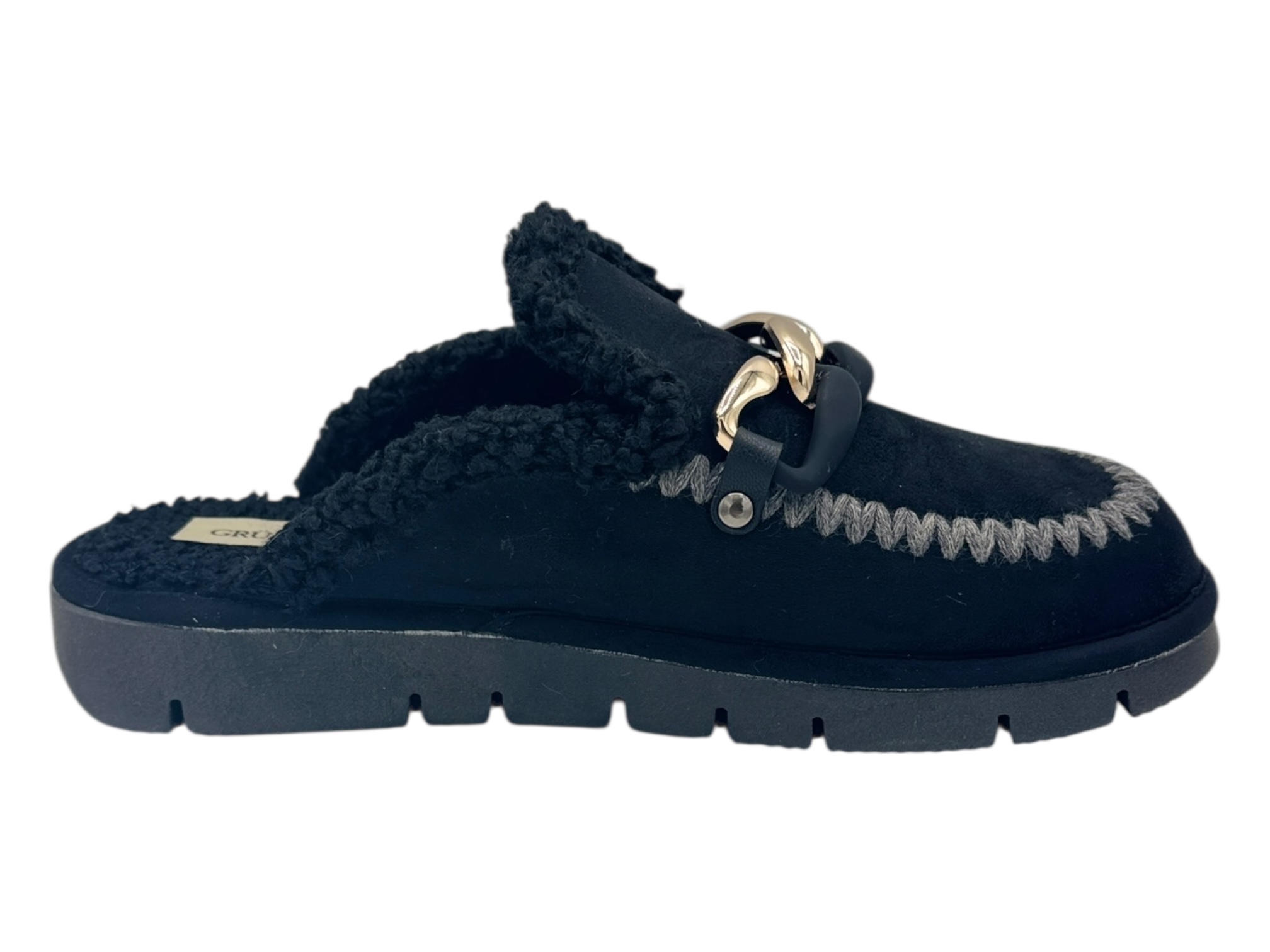 grunland ci1606 nero ciabatta donna catena pelo