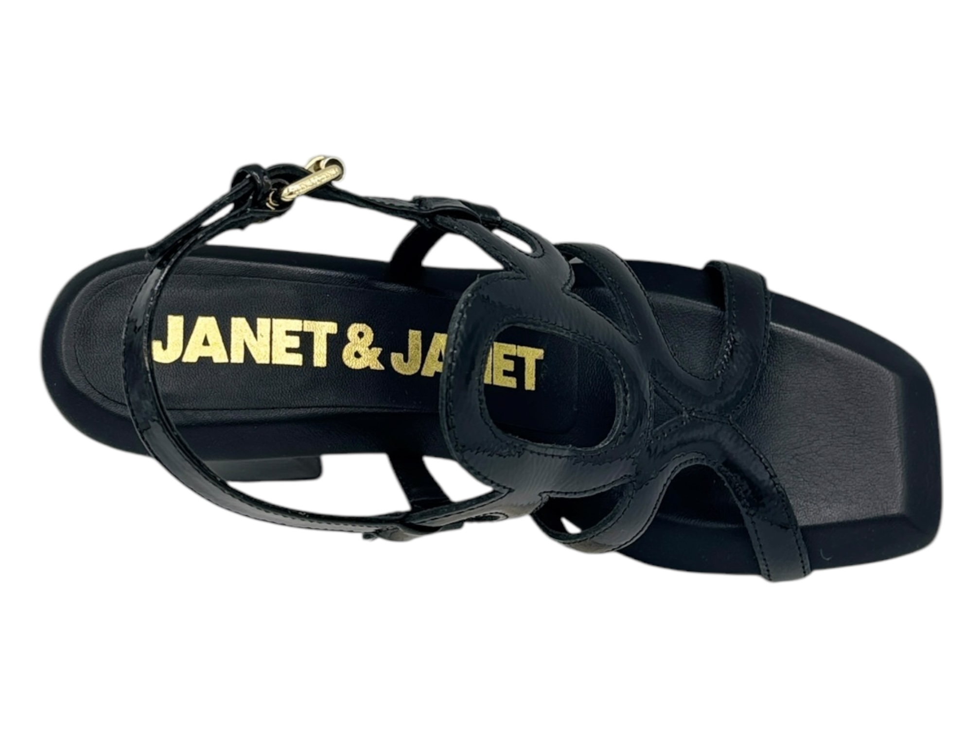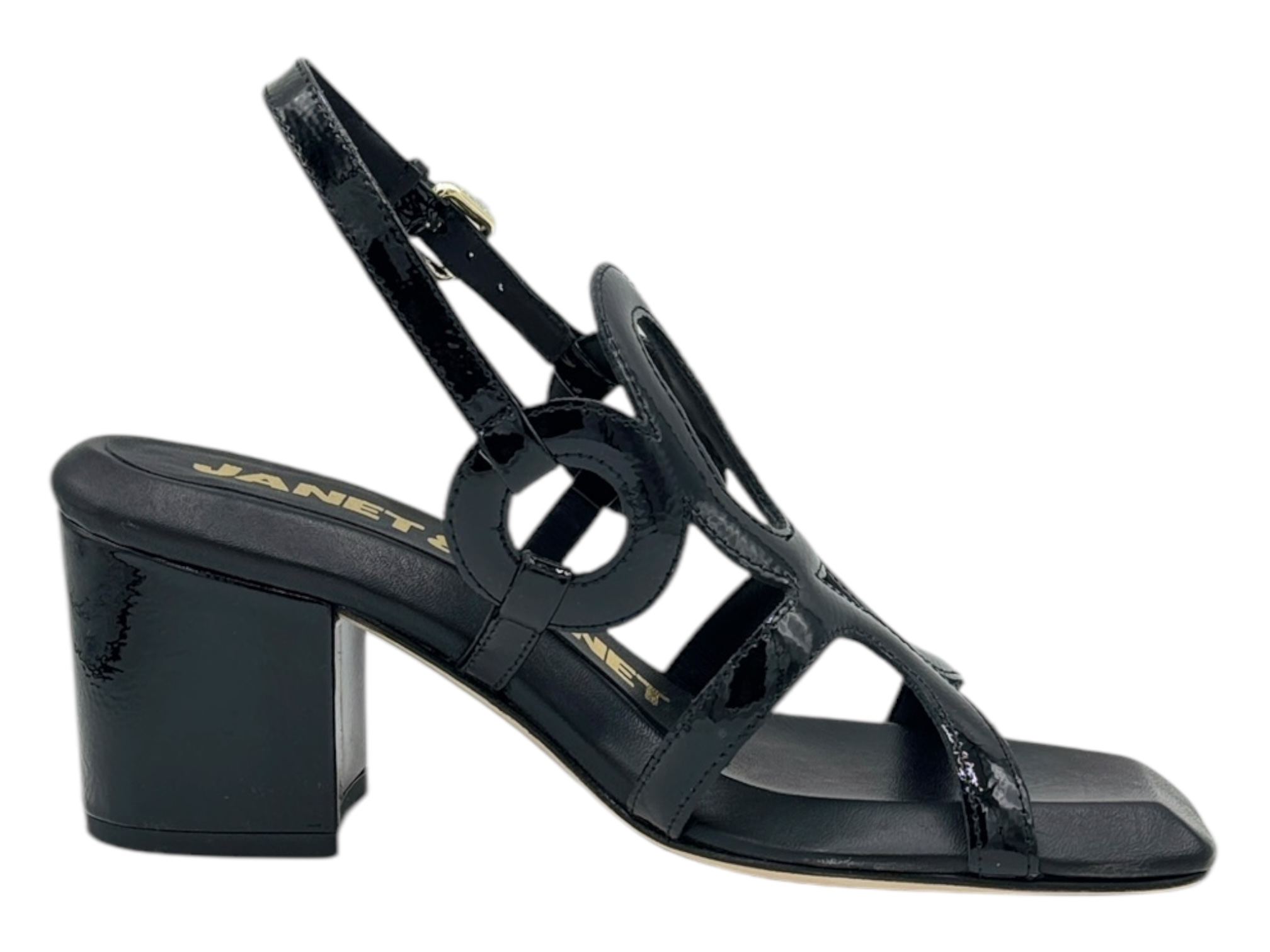 janet j-213 nero sandalo donna pelle lucida tacco