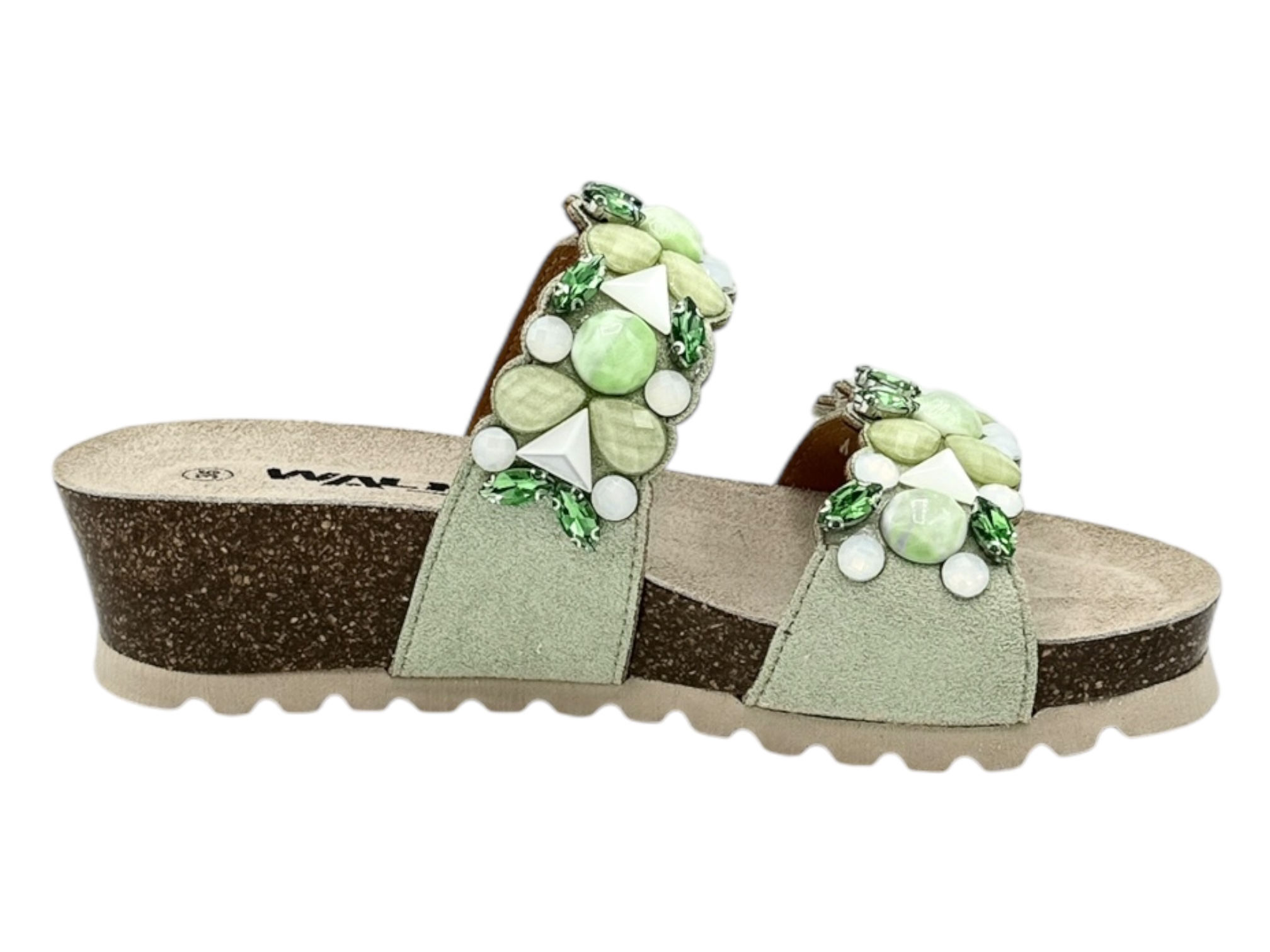 melluso 018147 verde ciabatta donna zeppa pietre