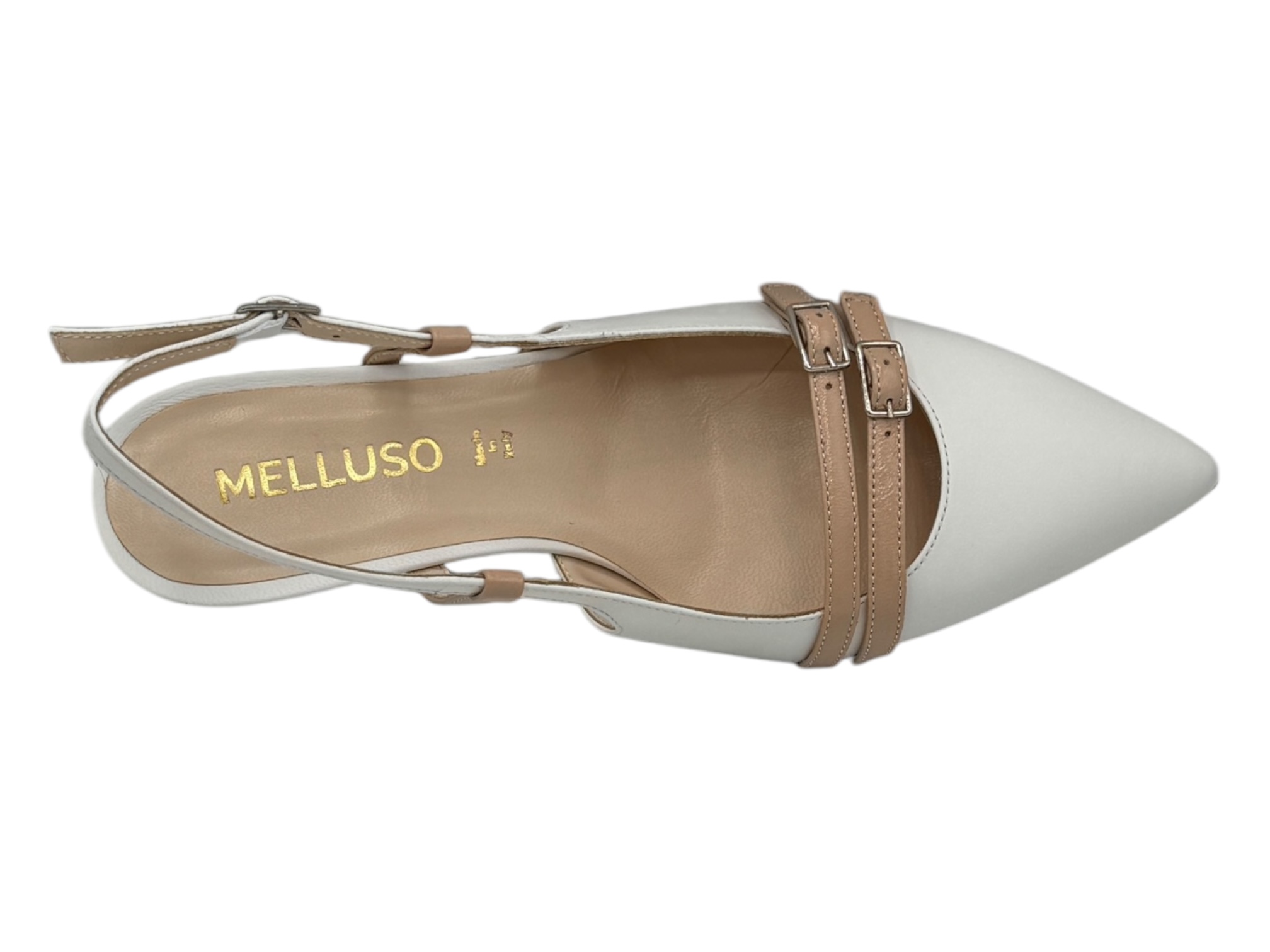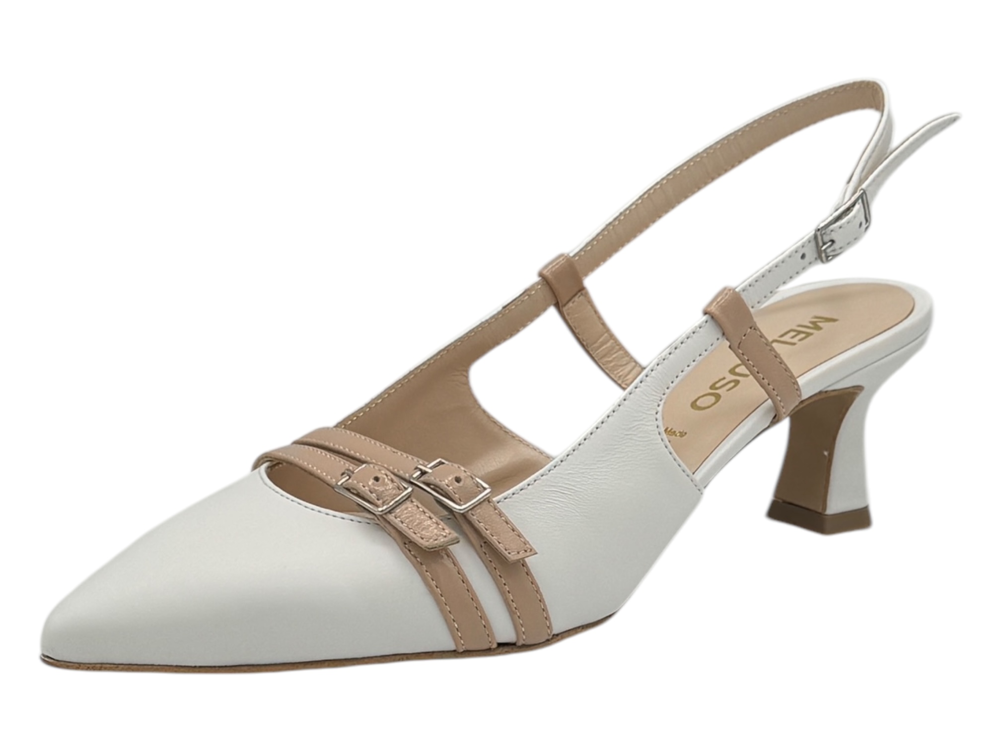 Tomaia: pelle Fodera: pelle Soletta: pelle Plantare: Fondo:cuoio Altezza pianata:0.5cm Altezza tacco: 5.5 cm Chiusura:cintino con fibbia Applicazioni: Calzata: regolare made in italy