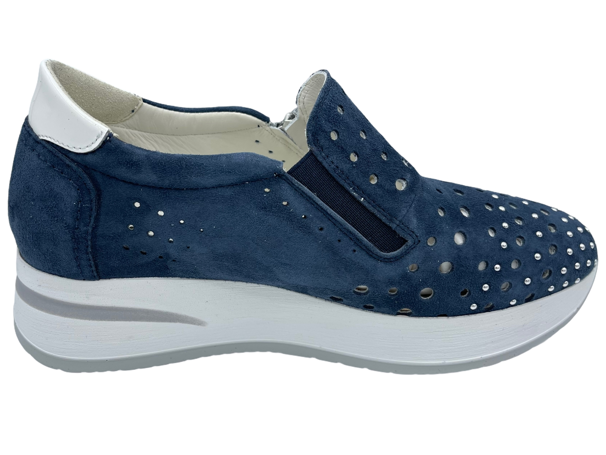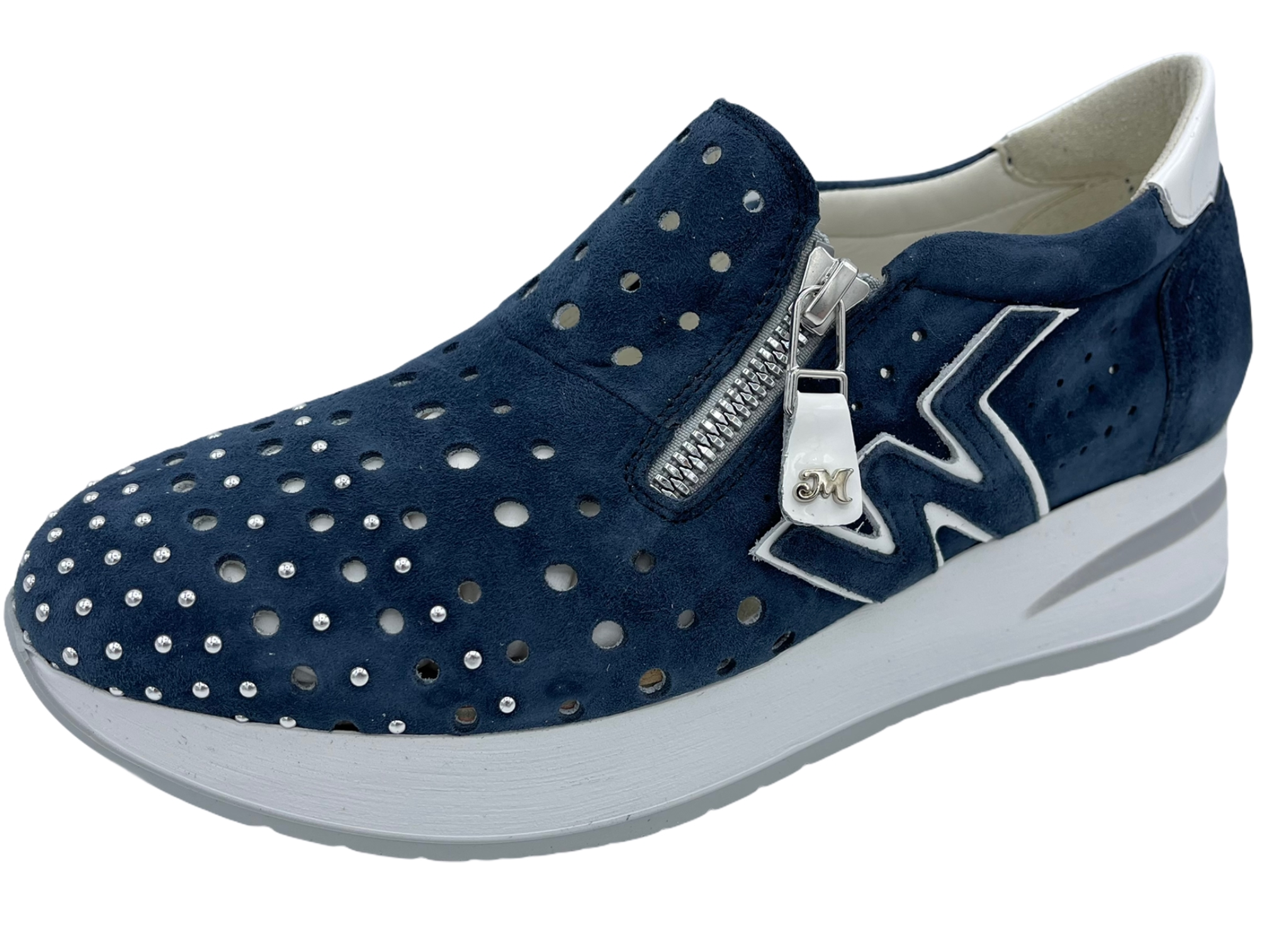 Tomaia: pelle/camoscio Fodera: pelle Soletta: pelle Plantare:estraibile Fondo: gomma Altezza suola:2.5 cm Altezza tacco:4 cm Chiusura:cerniera Applicazioni:borchie argento Calzata:regolare