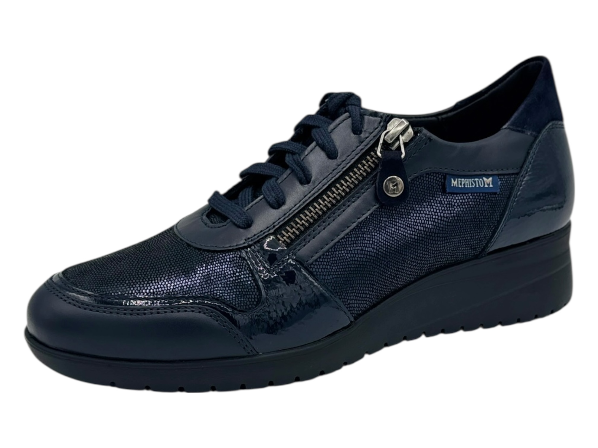 mephisto iasmina blu scarpa pelle donna zeppa media